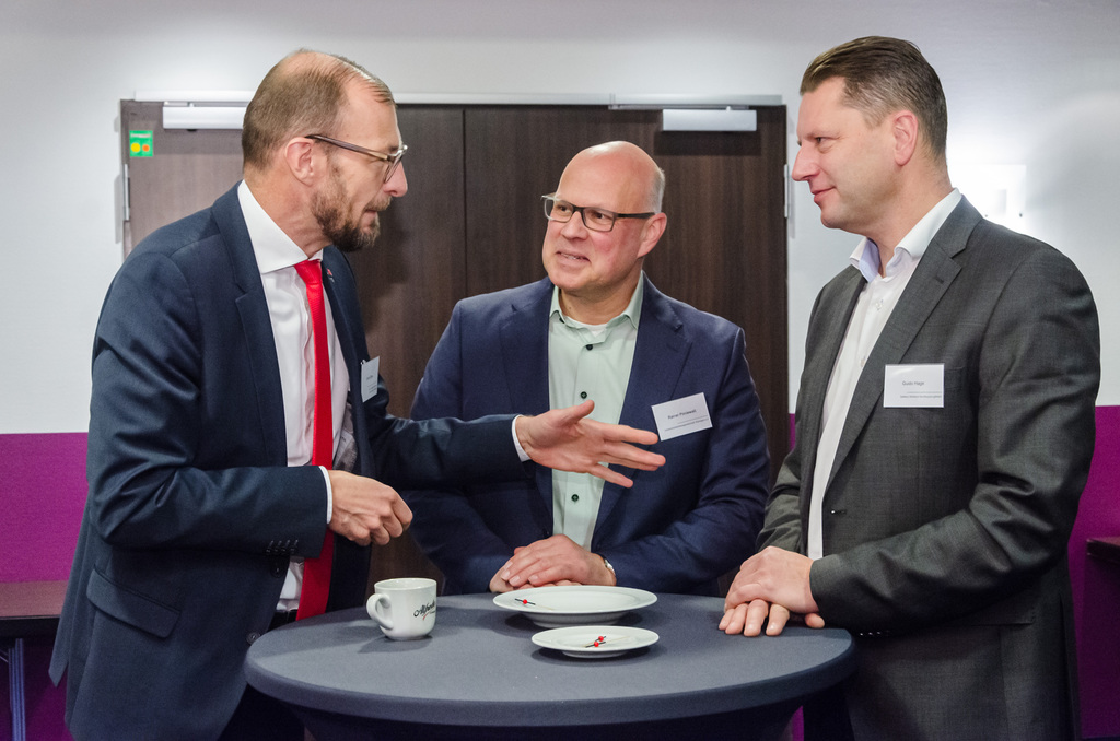 Tina Rudolph (MdB, SPD), Oliver Greie (Landesbezirksleiter ver.di für Sachsen, Sachsen-Anhalt, Thüringen) und Rainer Poniewaß (Geschäftsführer der LKHG)