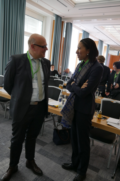 Die Vorsitzende der LKHG, Dr. Gundula Werner, und Geschäftsführer Rainer Poniewaß machten deutlich, dass die Thüringer Krankenhäuser in herausfordernden Zeiten eine pragmatische und unbürokratische Unterstützung durch den Bund benötigten. „Die für die Krankenhäuser und die Pflege vorgesehenen rund 8 Mrd. € aus dem Wirtschaftsstabilisierungsfonds sind ein erster Schritt in die richtige Richtung“, so Dr. Gundula Werner im Hinblick auf die Zusagen der Bundesregierung, die Krankenhäuser mit einem Hilfsprogramm zu unterstützen. Nun komme es aber darauf an, dass das dringend benötigte Geld nicht nur als Liquiditätshilfe, sondern dauerhaft den Krankenhäusern zur Verfügung gestellt wird. Dies müsse zudem auch schnellstmöglich passieren. Die Vorschläge müssten mit einer unbürokratischen und praktikablen Lösung unterlegt werden. Dies bekräftigte auch die stellvertretende Vorstandsvorsitzende der Deutschen Krankenhausgesellschaft (DKG), Prof. Dr. Henriette Neumeyer, die zu einem Vortrag über die aktuelle Lage der Krankenhäuser referierte.